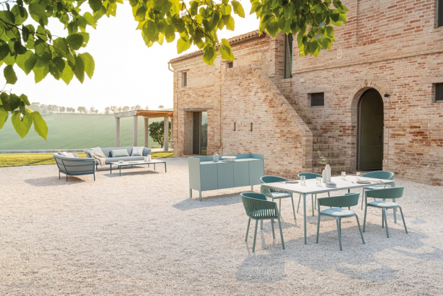 Borden kombinerar rena, geometriska former med en mix av hållbara material. Välj mellan olika bordsskivor som vilar på ett stabilt underrede i lackerad aluminium – en snygg kontrast som ger bordet både karaktär och styrka. Ben, ram och stöd är tillverkade i strängpressad aluminium, vilket gör bordet både lättskött och långlivat.