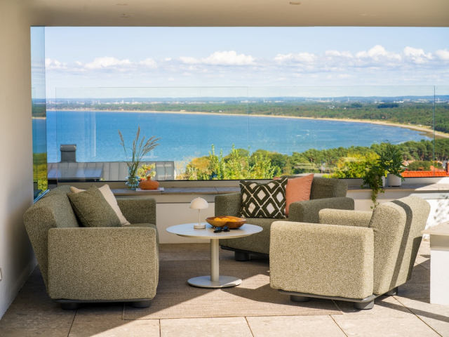 Det vattenavvisande TPU-tyget gör soffan vädertålig och dynorna i Teddy-tyg i färger förhöjer känslan av en exklusiv utelounge. Dynorna är dessutom enkla att ta av och förvara. Bolster suddar ut gränsen mellan inne och ute – känslan av en innefåtölj skapad för livet utomhus.