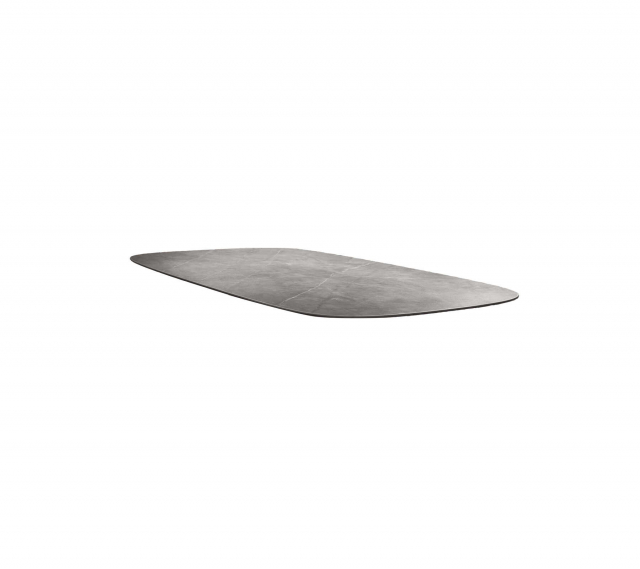 Bordsskiva med snyggt rundade hörn i stilren taupefärgad keramik från Cane-line. Bordsskivan passar till Mellow matbordsunderrede oval i teak.