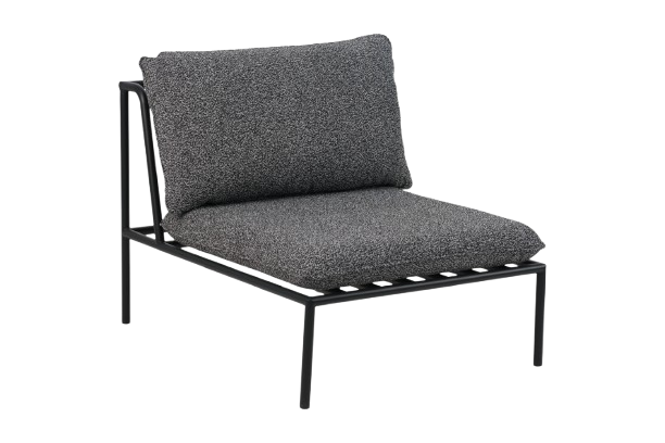 Uppkallad efter sina kragliknande former – en modulär loungeserie definierad av mjukt Teddy tyg och elegant böjda aluminiumrör. Flexibel och byggbar – varje del fästs enkelt med diskreta kopplingar och halkfria dynor. Finns i flera färger på både stomme och tyg.
