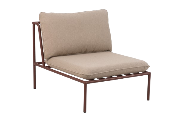 Uppkallad efter sina kragliknande former – en modulär loungeserie definierad av mjukt Teddy tyg och elegant böjda aluminiumrör. Flexibel och byggbar – varje del fästs enkelt med diskreta kopplingar och halkfria dynor. Finns i flera färger på både stomme och tyg.