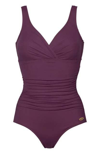Baddräkt Fiona med inbyggd bystsupport och mjuk vaddering för ökad komfort. Den har eleganta draperingar över bysten och magen. Powernet framtill ger en slankande effekt, vilket skapar en smickrande passform.