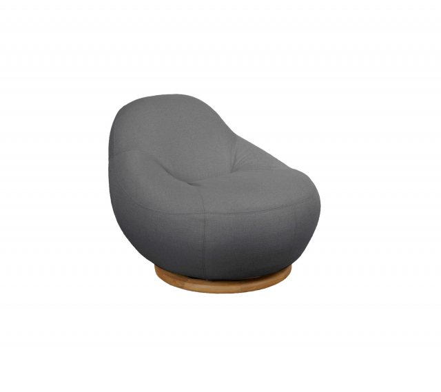 Fåtöljen är utrustad med en diskret 360° svängbar bas i teak, som tillför subtil funktionalitet till det lugna, moderna uttrycket och gör det möjligt att röra sig mjukt utan att lämna ögonblicket. Den organiska silhuetten skapar ett avslappnat men elegant uttryck som passar perfekt i moderna inredningar och loungeområden.