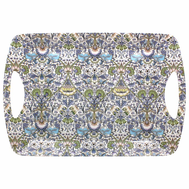 Stor bricka med handtag med William Morris härliga mönster Lodden. Tillverkad i melamin.