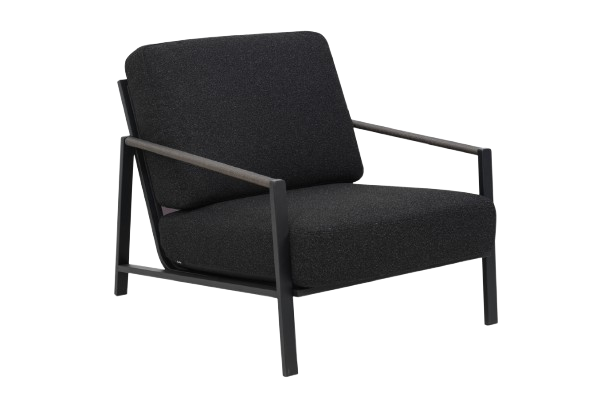 Lyra är en modern och mycket sober serie i en härlig blandning av material. Stomme i svart pulverlackerat rostfritt stål (304) perfekt för att klara av olika väderförhållanden. Vackra detaljer av konsrrotting på armstöden.