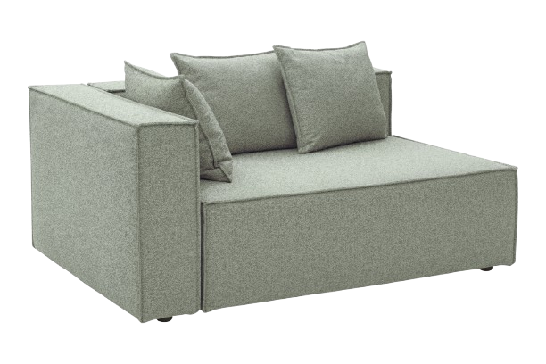 Varje modul är klädd i slitstarkt tyg med TPU-liner som står emot sol, fukt och vardagsliv, medan den mjuka stoppningen och sittytan med fjädrar bjuder in till långa, avkopplande stunder. Tre lösa mindre kuddar ingår i varje modul och soffans dekorativa sömmarna ger en sofistikerad look.