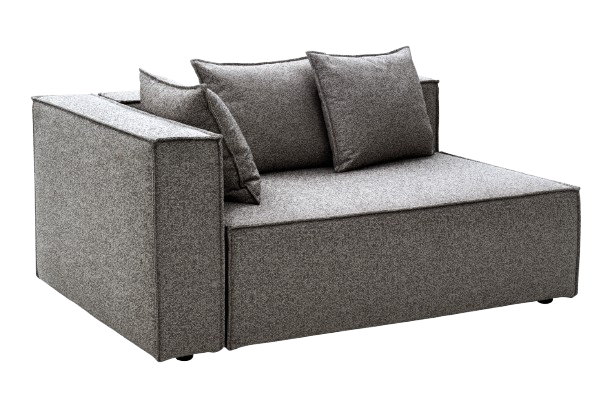 Varje modul är klädd i slitstarkt tyg med TPU-liner som står emot sol, fukt och vardagsliv, medan den mjuka stoppningen och sittytan med fjädrar bjuder in till långa, avkopplande stunder. Tre lösa mindre kuddar ingår i varje modul och soffans dekorativa sömmarna ger en sofistikerad look.