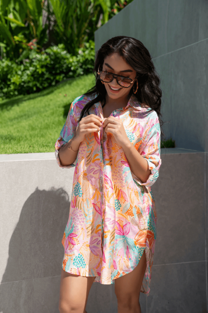 Supersöt och fin kortare skjortklänning i KAANDAS pastelliga mönster Noa. Dold knäppning och 5/6 dels ärm med lite mindre manchett, men samma härliga mjuka viskos modal tyg. Produktens artikelnummer: 26KBL11-TUN612Produktens EAN-kod: - Kontakta oss