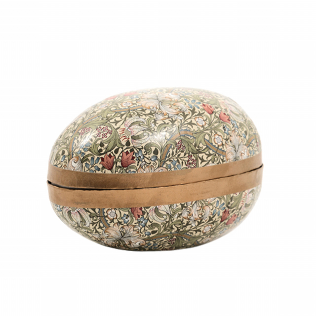 Ett underbart dekorativt påskägg i det klassiska Golden Lily-mönstret av William Morris. Det vackra blommönstret i mjuka gröna toner ger en tidlös och romantisk känsla som passar perfekt till påsken.