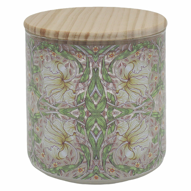 Fin burk i glas med trälock och dekorerad med William Morris populära mönster Pimpernel.