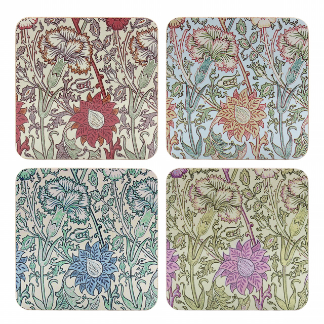 Snygga glasunderlägg från William Morris i mönster Pink & Rose. Förpackningen innehåller 4 st glasunderlägg i olika färger.