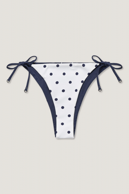 Polka Dot Iliana är en vändbar bikinitrosa med knytband i sidan. Vilken färg vill du ha idag? Välj mellan klassisk blå eller vit med blå prickar. Bikinitrosan har en hög midja och låg täckning baktill. Produktens artikelnummer: PEWS2629-291Produktens EAN-kod: - Kontakta oss
