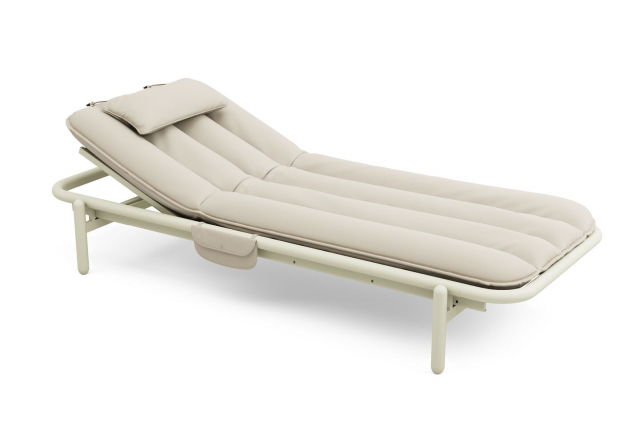 Sunbun är en generös och ultrabekväm solsäng där nostalgisk design möter modern komfort. Formen refererar subtilt till de mjuka, rundade linjerna hos uppblåsbara designer från 70- och 80-talet, återtänkta med material av hög kvalitet och genomtänkta detaljer. Den robusta aluminiumramen, 85 cm bred, är UV- och väderbeständig, enkel att montera och justerbar i fyra lägen.