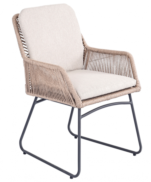 Denna eleganta karmstol kombinerar modern design med hög komfort och slitstarka material – perfekt för både uteplats och inglasade miljöer. Den stilrena formen tillsammans med den handflätade konstrottingen ger ett luftigt och exklusivt uttryck.